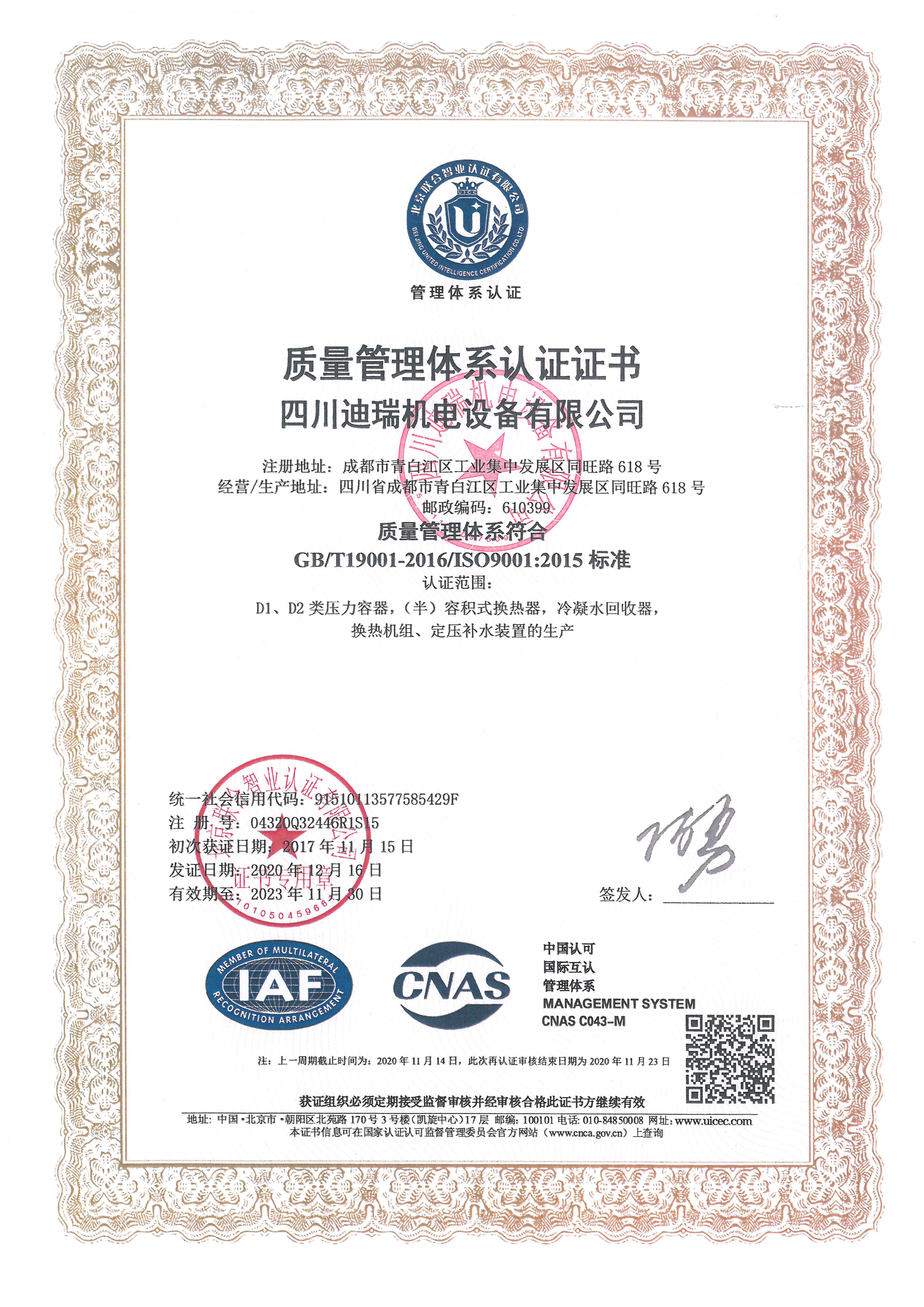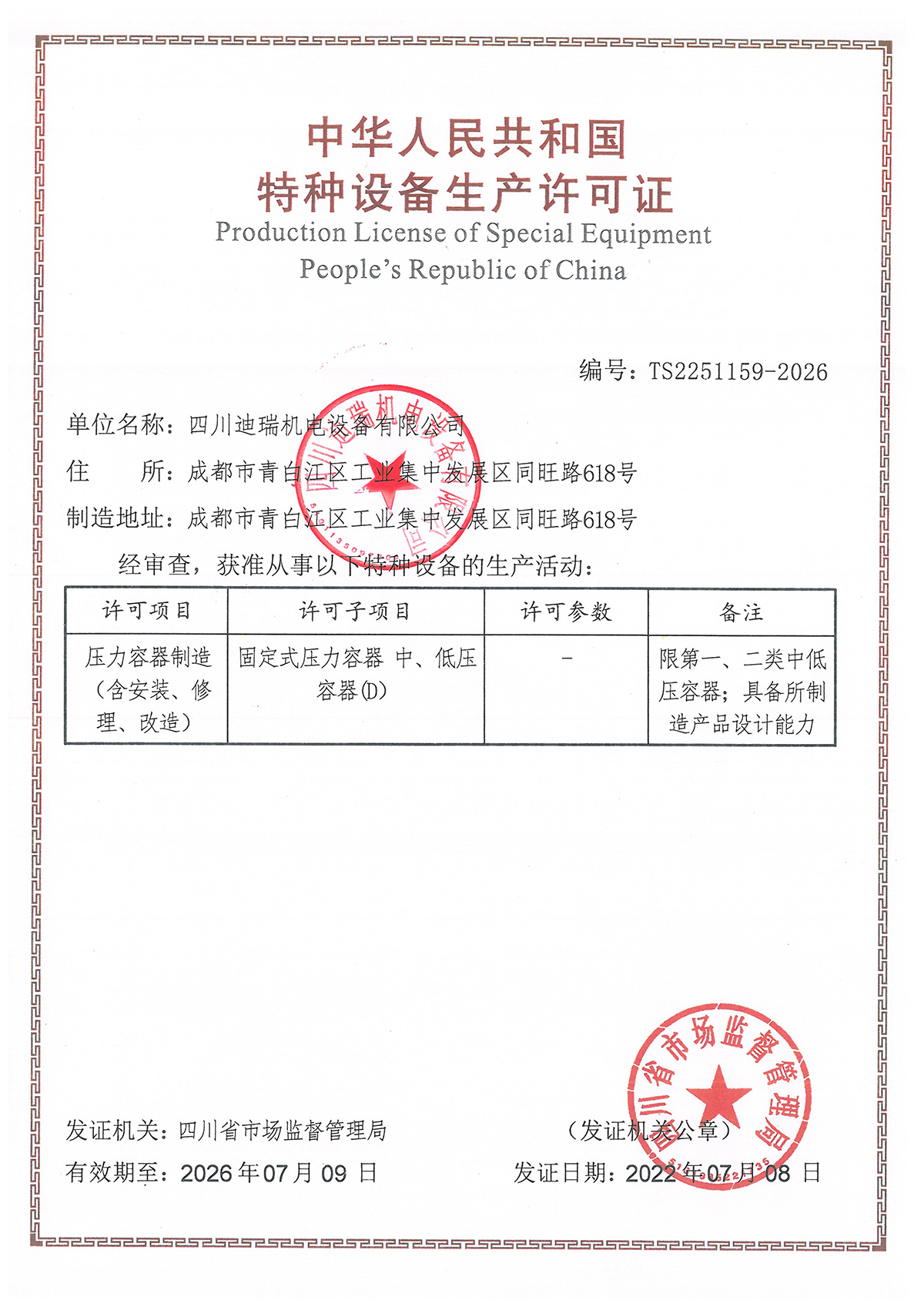 企業(yè)奉行“用戶至上、優(yōu)質(zhì)服務(wù)、持續(xù)改進(jìn)”的宗旨,不斷改進(jìn)產(chǎn)品結(jié)構(gòu),提升產(chǎn)品性能,并與西安交通大學(xué)能源與動力工程學(xué)院建立產(chǎn)學(xué)研合作,取得8項(xiàng)實(shí)用新型專利,正在申報(bào)一項(xiàng)發(fā)明專利。企業(yè)通過D1、D2類壓力容器制造許可認(rèn)證和ISO9001質(zhì)量管理體系認(rèn)證,被評為成都市擬上規(guī)企業(yè)、成都市專特新精企業(yè)和大中華區(qū)酒店工程師協(xié)會最佳合作單位。